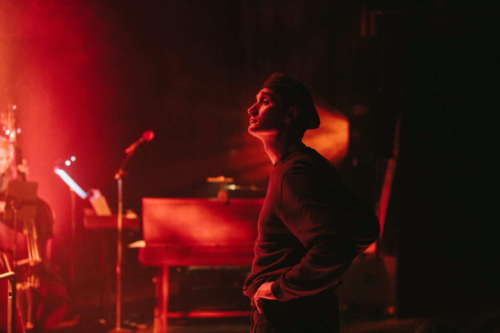 The atmosphere and room temperature deliberately rises in sync with the evolving visual colorways of the movements of the show – beginning with cool blues and ending with a burning climax of ambers as the orchestra manoeuvre through the movements of the piece and into a celebratory cèilidh – celebrating the arts and the natural world.